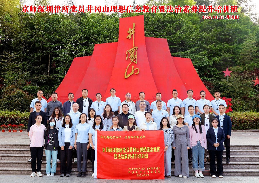 为扎实推进党员理想信念教育,全面提升党员律师法治素养与履职担当,近日,京师深圳律所组织党员学员赴革命圣地井冈山,开展理想信念教育暨法治素养提升专题培训。 4 月 24 日下午,全体学员顺利完成报到及入住手续,随后举行开班仪式。仪式上,领导致辞、授予班旗、集体宣誓等环节有序开展,凝聚奋进共识;开班首堂专题课程《井冈山斗争与井冈山精神》,带领大家深度回望峥嵘革命岁月,筑牢思想根基。